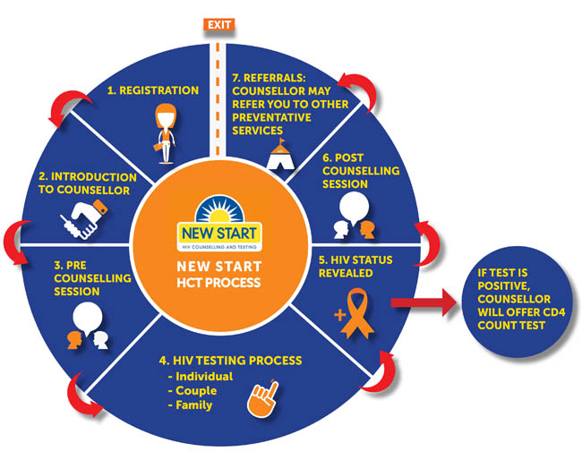 All New Start HCT services are run directly by New Start or by one of our NGO partners. Additional services are also offered along with HCT, such as taking samples for TB testing, testing the CD4 levels of people who test HIV-positive and helping you get the help you require from other health clinics and social services.